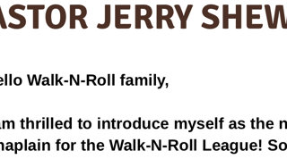 Walkin'Roll Families, we are excited to welcome Pastor Jerry Shew and wife Michelle as our new Walkin'Roll Chaplains. Pastor Arlie Roten and wife Kathy have served as our chaplains and due to health